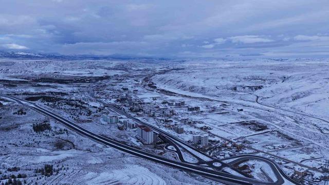 Çankırı’da kar yağışı ile beyaza bürünen kent merkezi havadan görüntülendi.