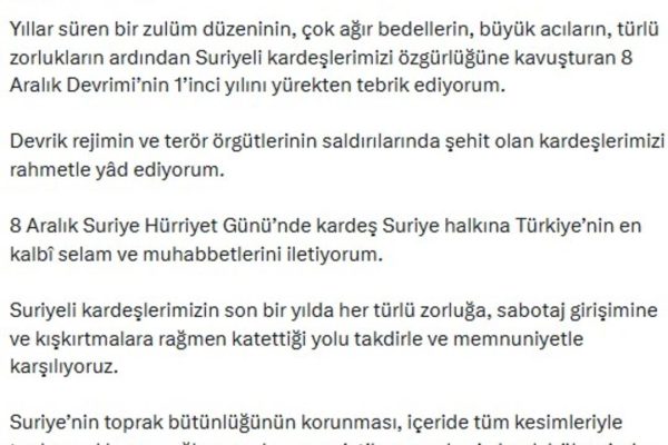 Cumhurbaşkanı Erdoğan Suriye‘deki devrimin birinci yılı için mesaj paylaştı. Suriye’nin toprak bütünlüğüne vurgu yapan Erdoğan…
